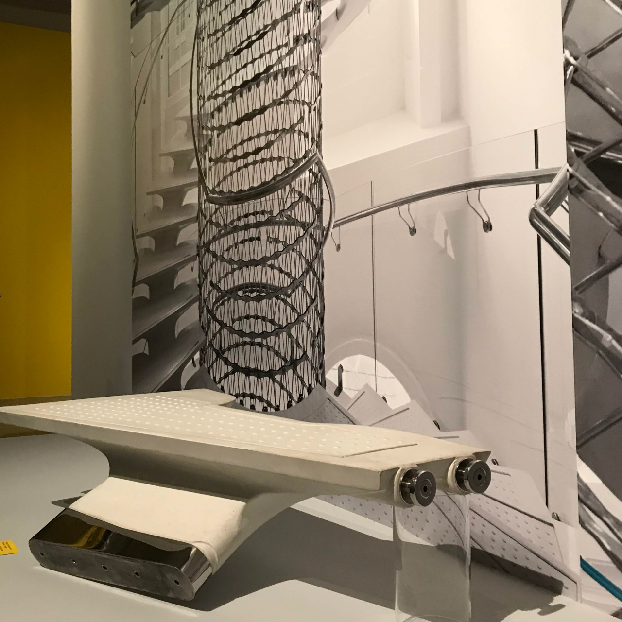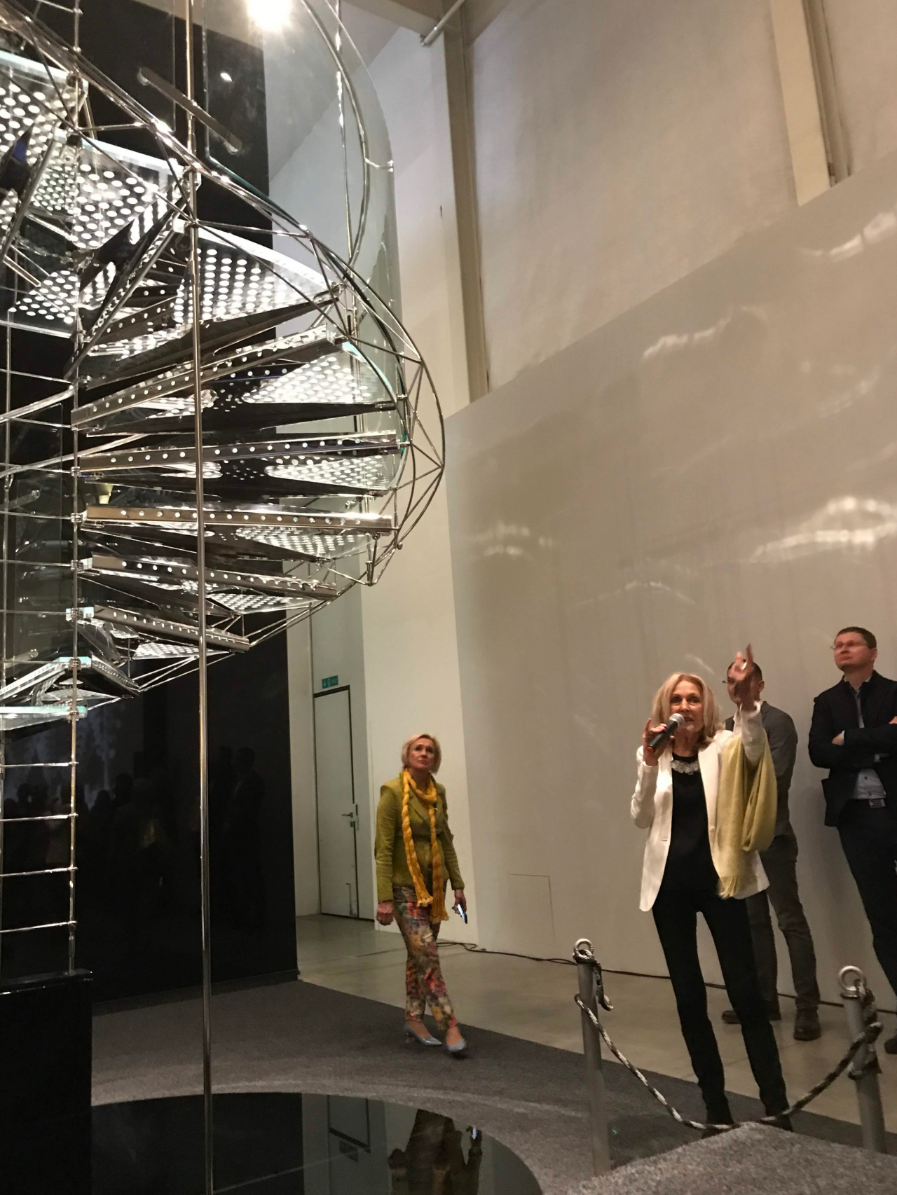 V prostorách výstavy je rovněž reinstalováno původní monumentální skleněné schodiště vytvořené pro interiér pařížské pobočky sítě obchodů Joan & David v roce 1994. Proslulá přímá i spirálovitá schodiště Evy Jiřičné, v nichž jako první použila sklo jako konstrukční element, jsou v jejím provedení povýšena na sochařská díla.