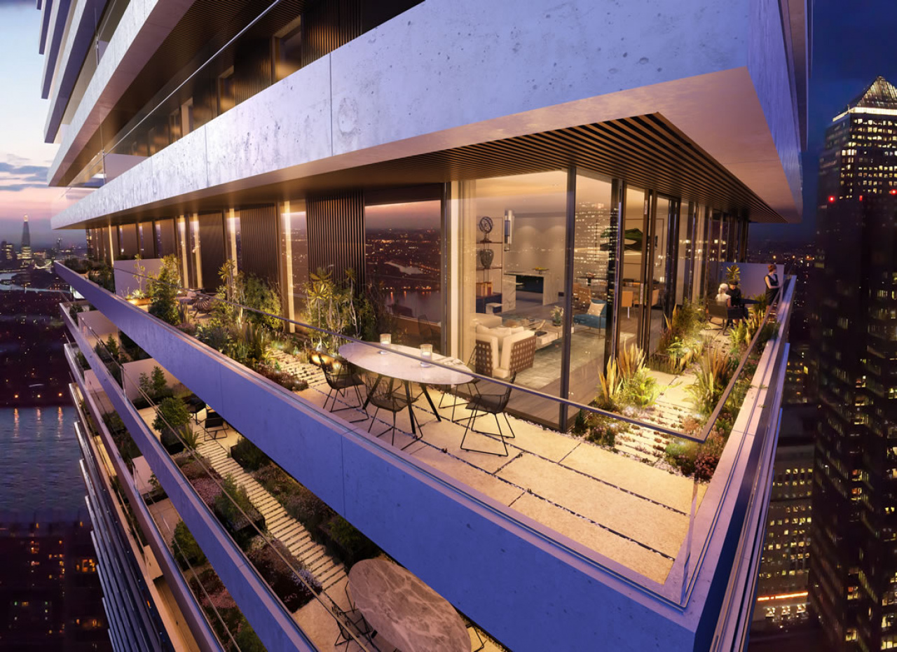 Wardian London will consist of two tall buildings. The Eastern tower will reach the height of 183 metres with 55 storeys. The Western tower will be 170 metres high with 50 storeys. Both the buildings will therefore become one of the tallest residential buildings, not only in London, but also in the entire Great Britain. There will be 792 apartments within the building. Each of these will be equipped with a separate outside terrace. The visitors of the Wardian Building will also find an outside 25-metre swimming pool, an inside sports centre, a cinema, a restaurant on the 55th floor and a unique view from the sky lounge bar.