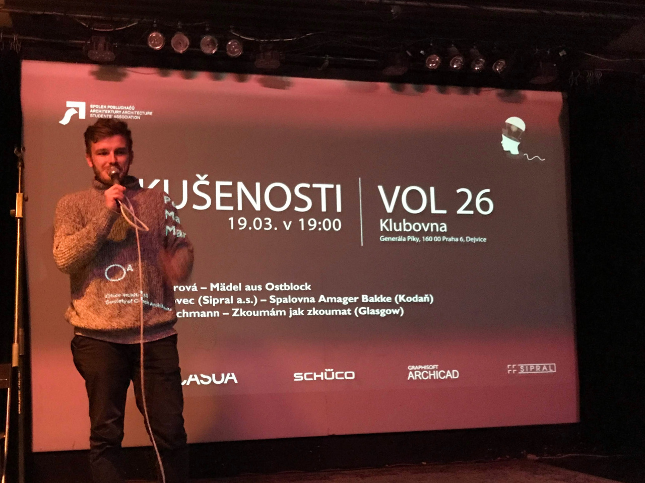 28 March 2019 – This year saw the twenty-sixth edition of the cult Olověný Dušan competition for students in the fields of architecture and design at the Faculty of Architecture of the Czech Technical University. The gala soiree with the announcement of the results was held at the Centre for Architectural and Municipal Planning (CAMP). As a long-term partner of the competition, Sipral could not be left out. It also granted support for the second time to Experiences, another student project organised by the Friends of Architecture Association.